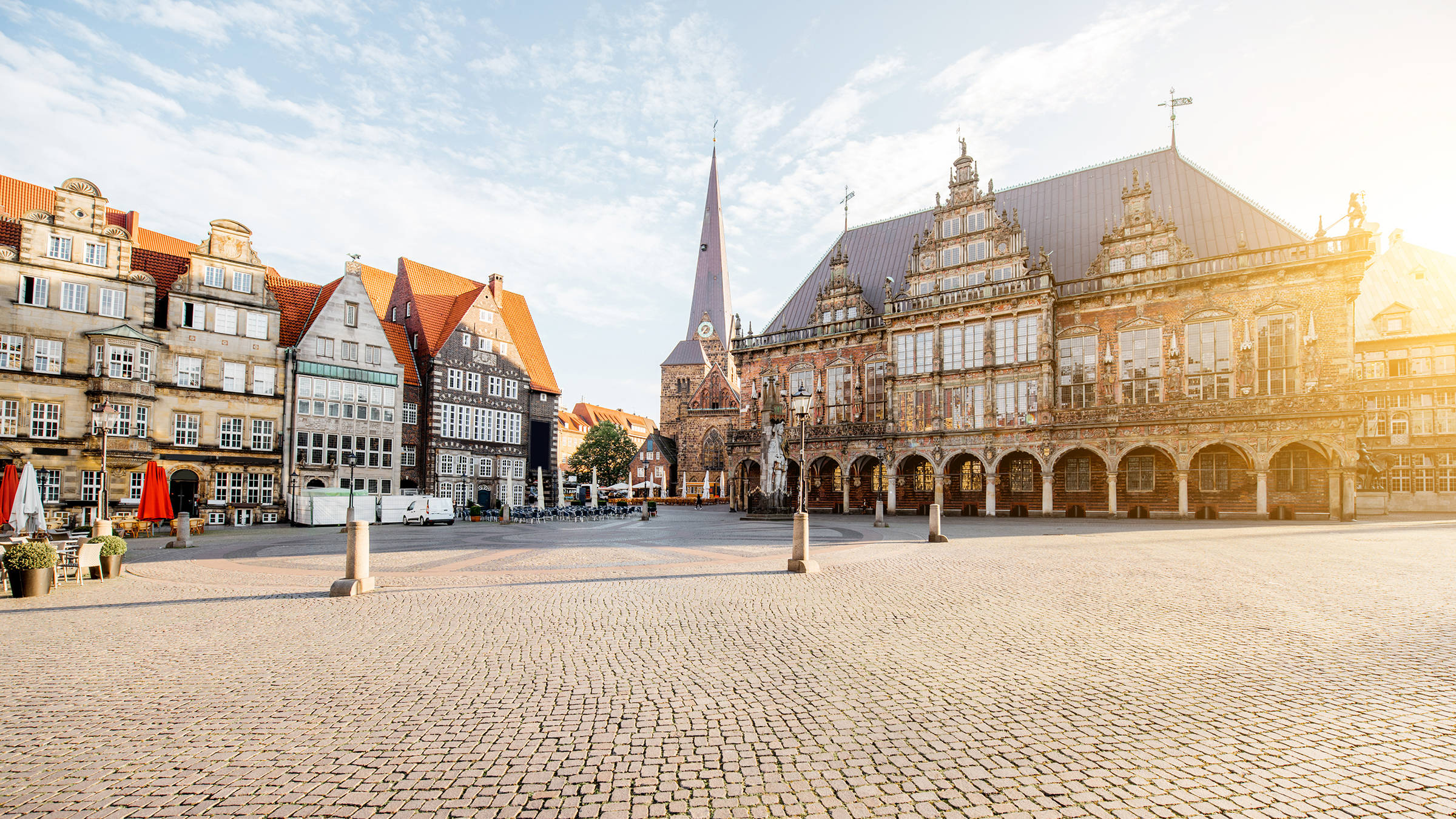 Beginnen Sie Ihren Stadtrundgang am Marktplatz nur hundert Meter neben dem H+ Hotel Bremen. Das Rathaus als Beispiel der Weserrenaissance und der davor stehende „Roland“ zählen zum Weltkulturerbe. Der St.-Petri-Dom ist ein beeindruckender romanisch-gotischer Sandsteinbau mit zwei Krypten, Dom-Museum und Bleikeller. An der Westseite des Rathauses steht die Statue der „Bremer Stadtmusikanten“ – wer den Esel an den Beinen fasst, hat einen Wunsch frei.