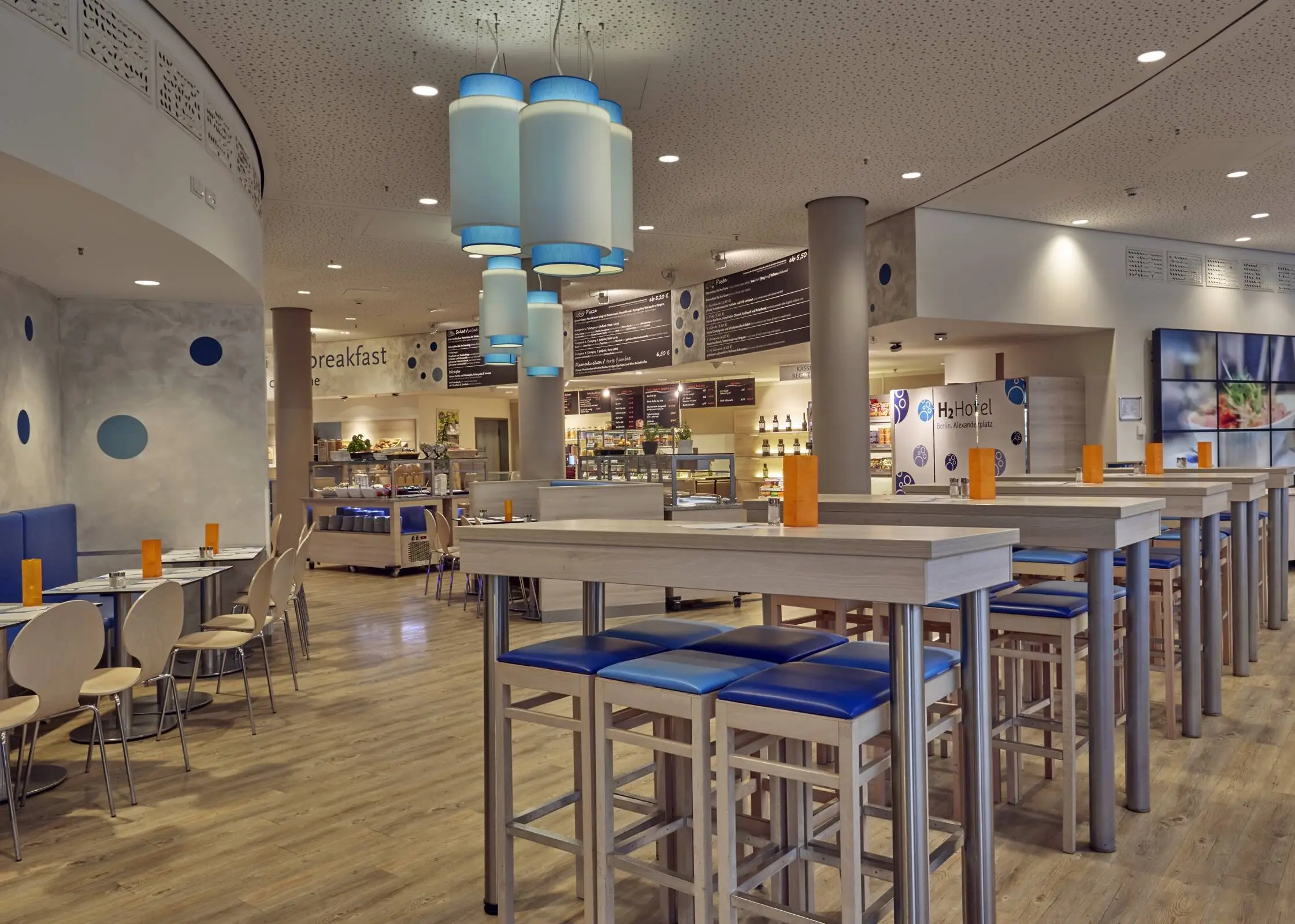 Iniziate la giornata con una ricca colazione all'H2 Hub. Che preferiate il salato o il dolce, componete la vostra colazione preferita dal nostro buffet. Panini freschi, muesli o frutta. L'H2 Hub offre la colazione giusta per tutti i gusti. Naturalmente il buffet offre anche delizioso caffè, tè o succhi di frutta.